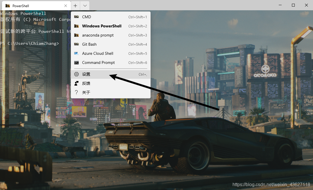 点击 Windows terminal 中的下拉箭头选择设置,打开配置 Windows Terminal 的 Json 文件。