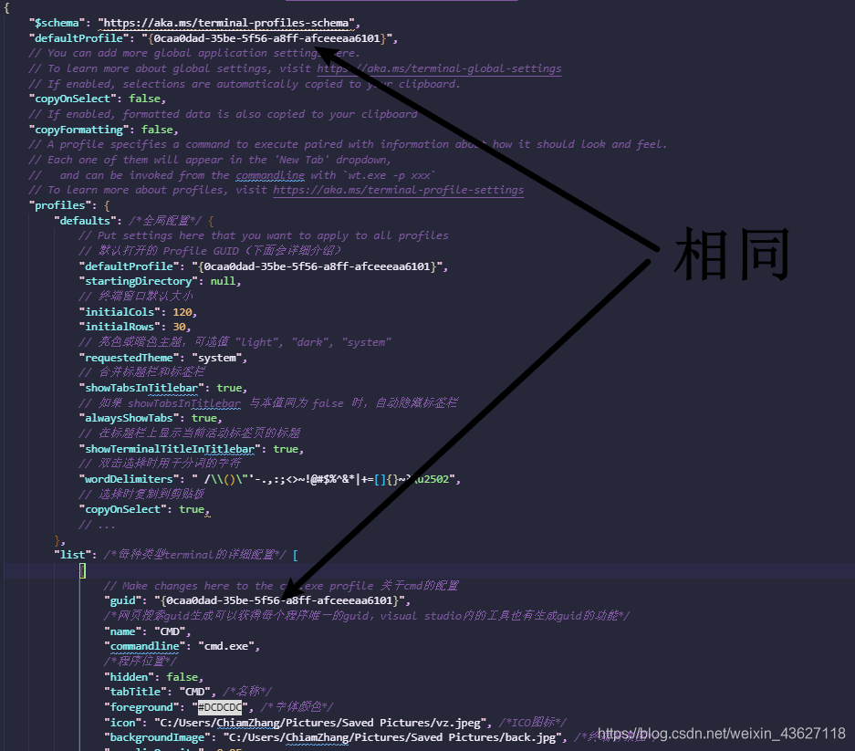 // 默认打开的 Profile GUID(下面会详细介绍)