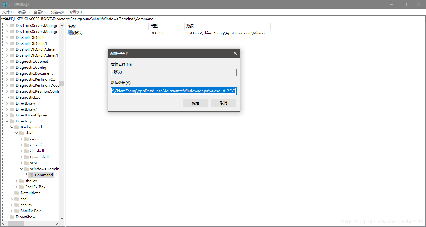 (默认) 字符串 在此处打开Windows Terminal #这个值是在右键菜单中显示的值